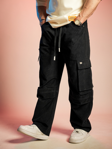 Phantom Cargo – Premium Black Wide-Leg Cargo Denims