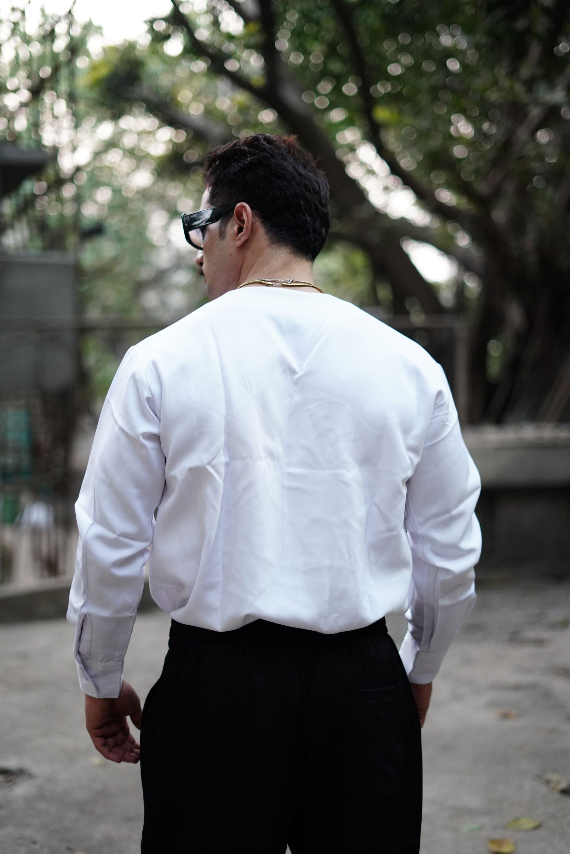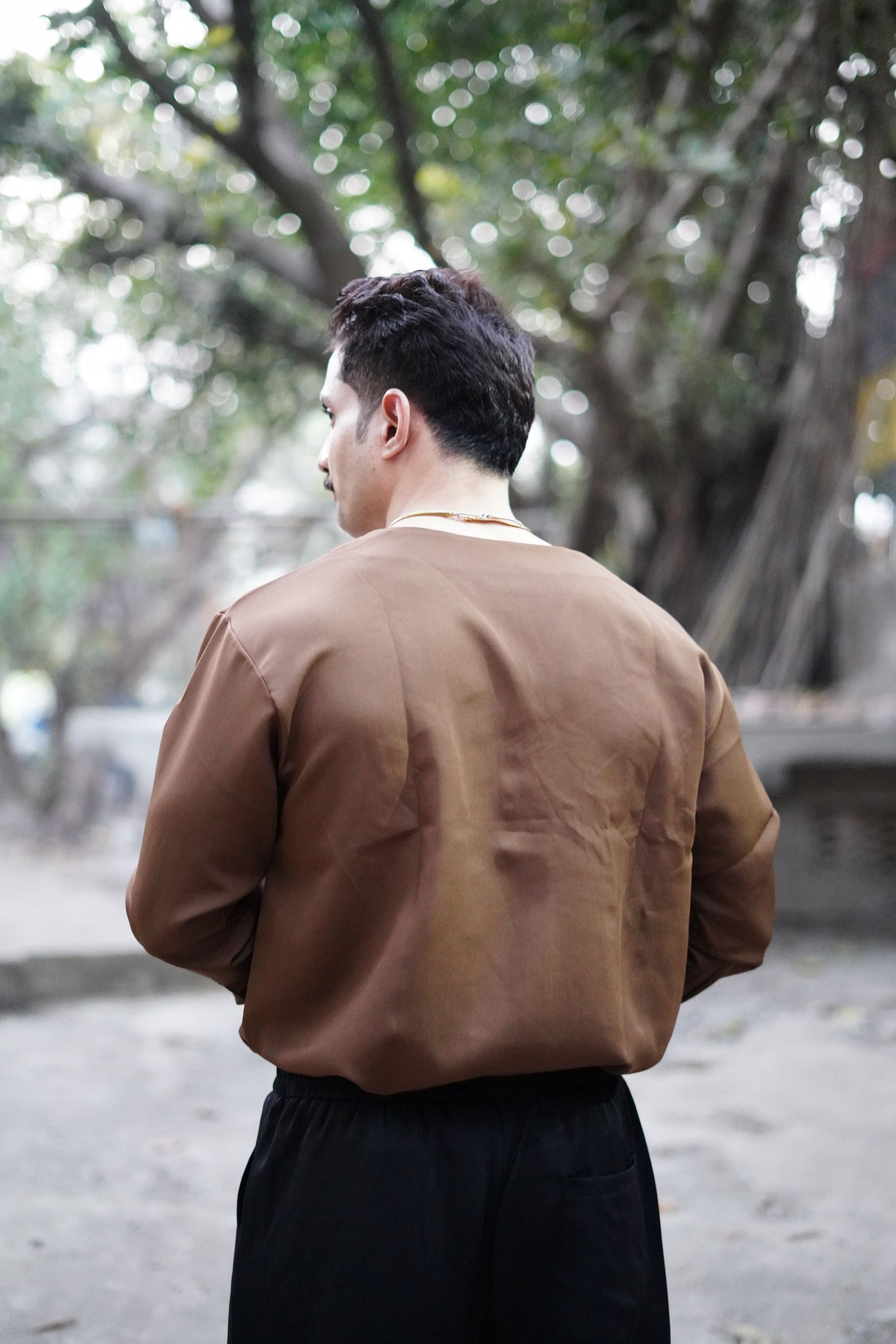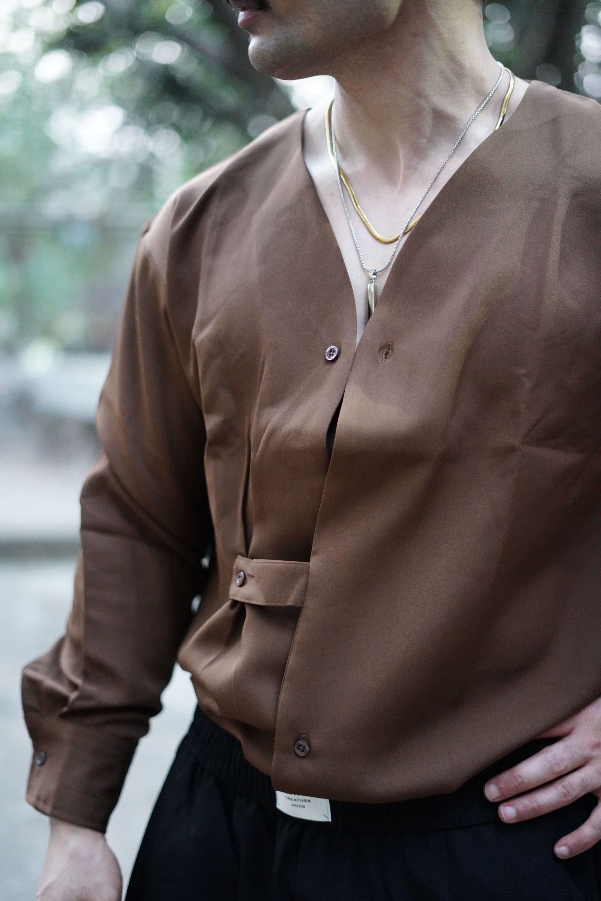 This shirt is designed for a modern Korean-style fall, sitting clean on the shoulders with a structured yet effortless drape.