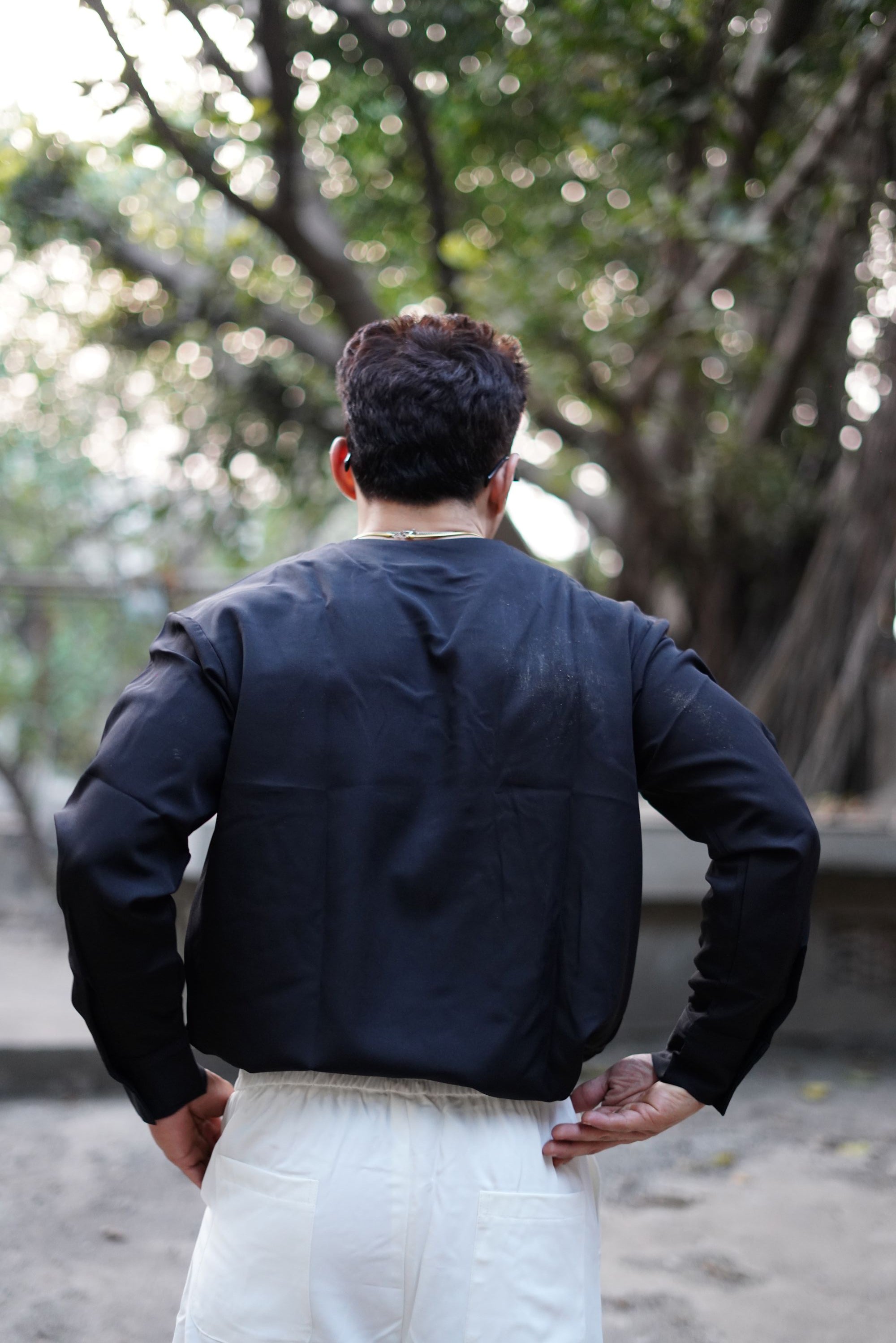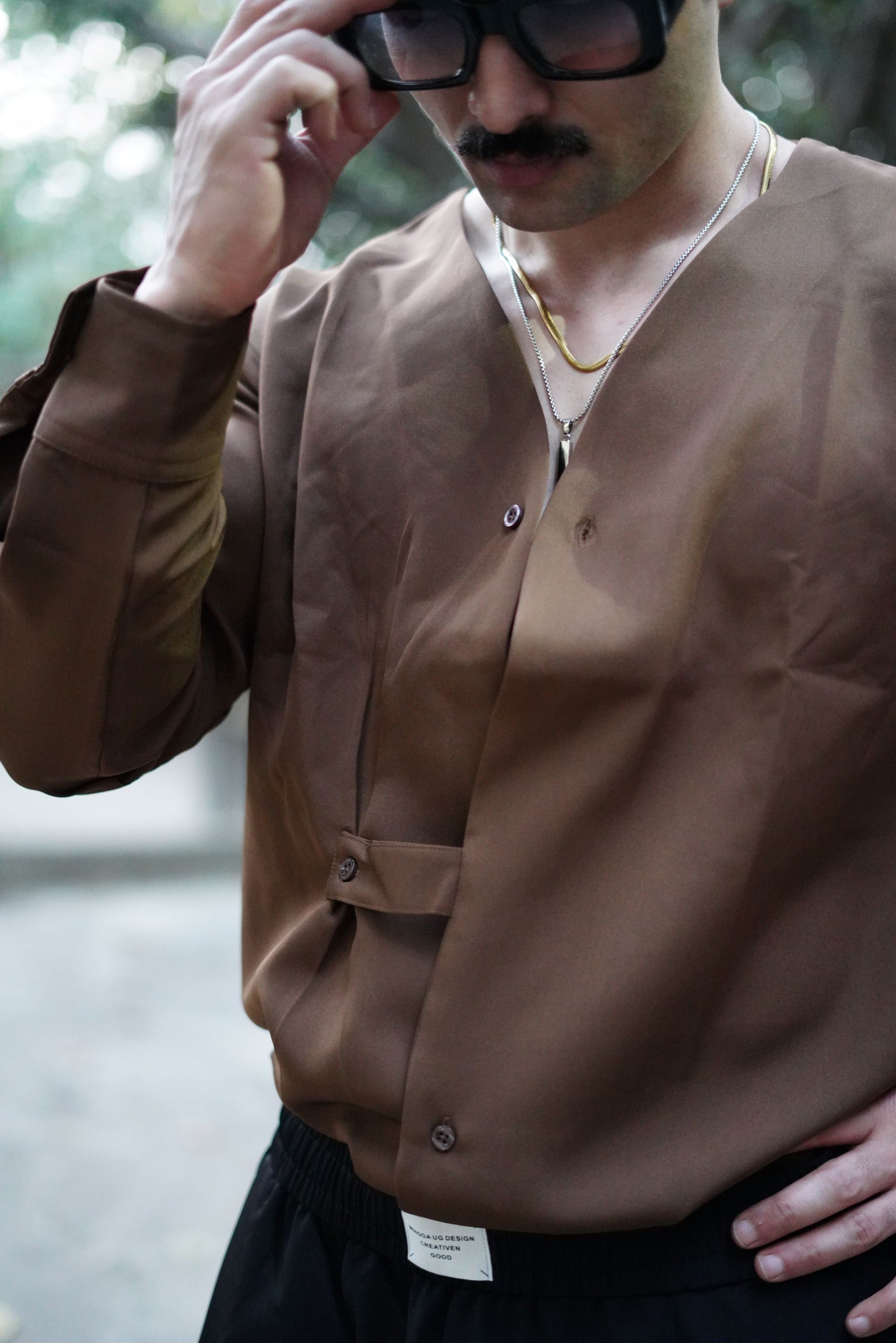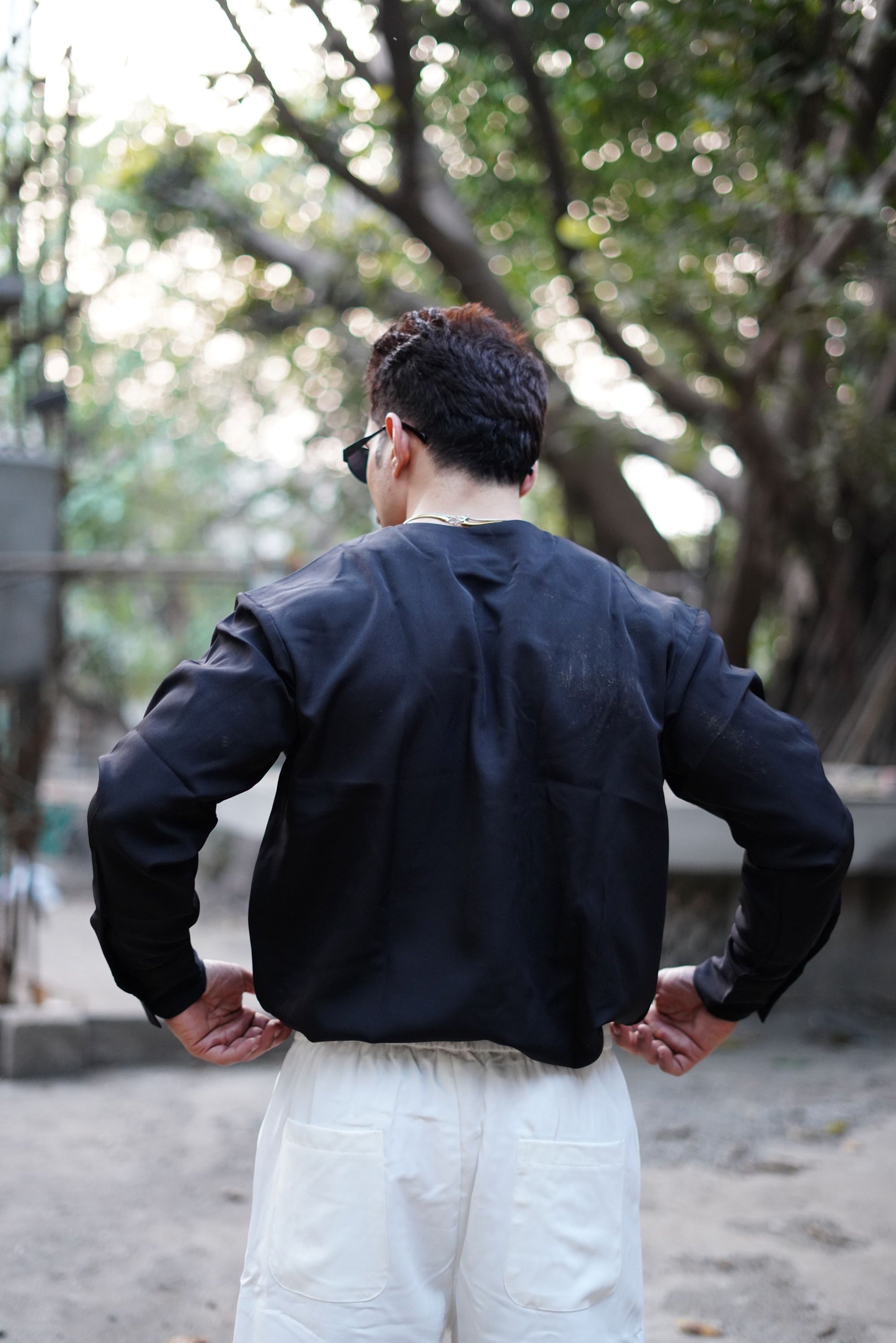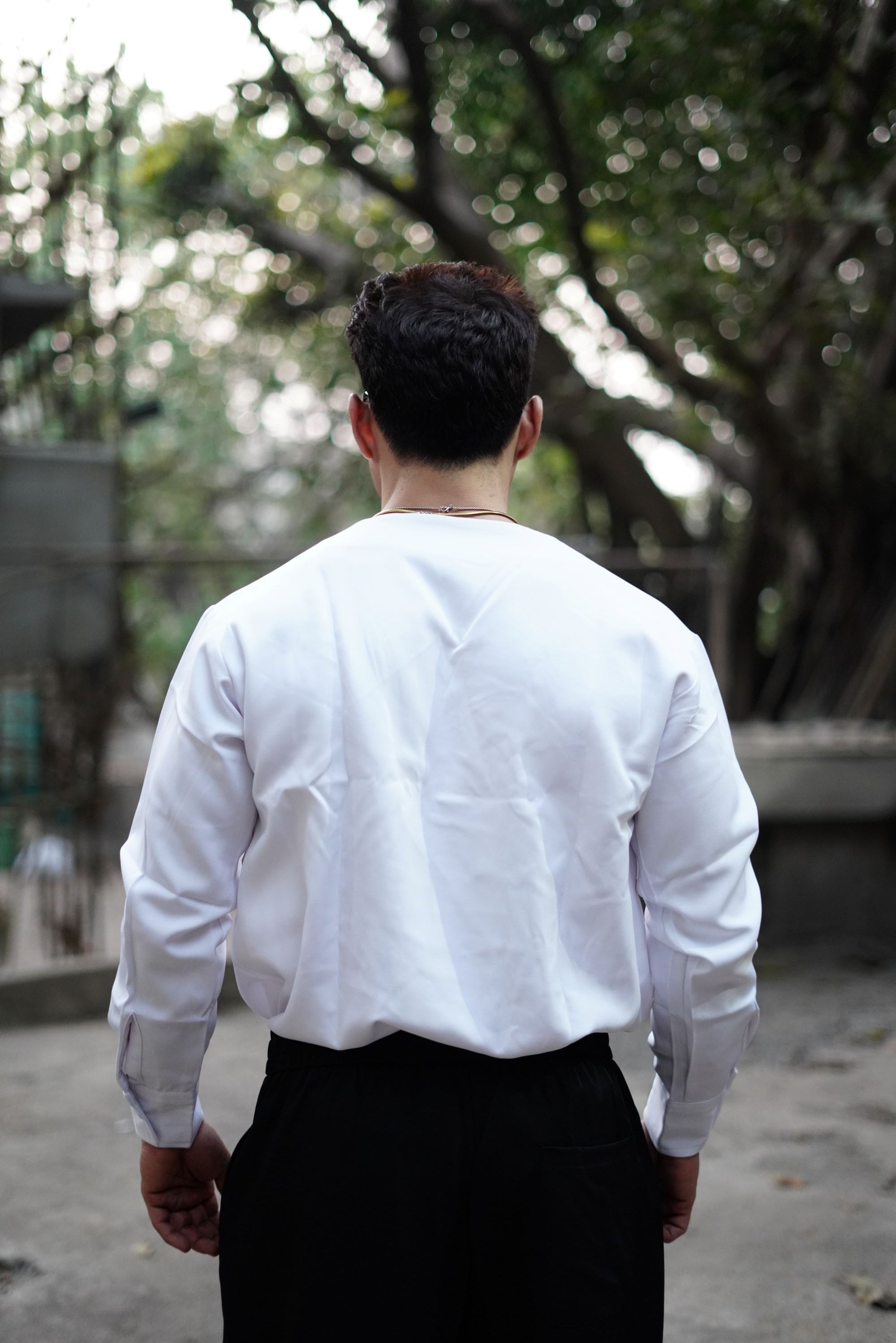 This shirt is designed for a modern Korean-style fall, sitting clean on the shoulders with a structured yet effortless drape.